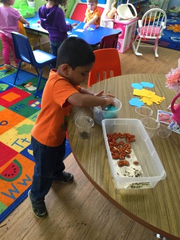 This week we're beginning a new unit of study ... it's all about spring! We're starting with seeds and growth, and eventually we'll also cover flowers, bugs, butterflies, and birds. But today was all about seeds. We looked at different types of seeds and talked about the parts of a plant (stem, leaves, flower, and roots).